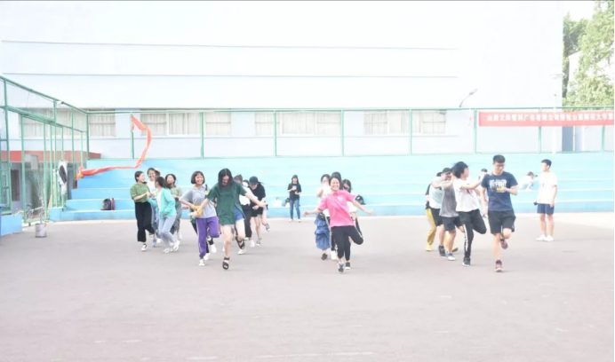 室外主要包括“你划我猜”和“小火车”两项活动,活动分别以比划猜成语和组队单脚跳步前进的形式开展。活动得到了同学们热情、积极的参加,在一片欢声笑语中,增加了同学彼此之间的沟通和了解,活动气氛不断高涨。