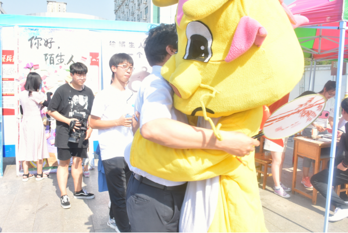 公司开展了“你好,陌生人”和“给陌生人一个拥抱”两项活动。活动期间,杨军董事长莅临公司服务点了解公司活动开展情况,并亲自参加了公司的活动。两项活动分别以匿名相送亲笔书信、互相拥抱彼此的形式传递真情,得到了现场师生的热情参与。一片欢声笑语中,大家彼此加深了沟通与了解,现场其乐融融,活动的气氛被不断推向高潮。