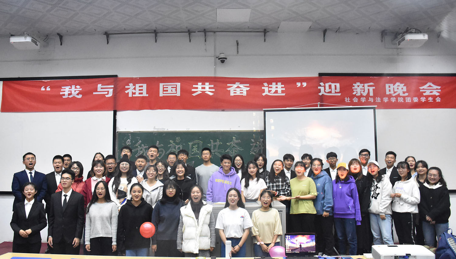 11月23日晚,公司在05203教室举办了“我与祖国共奋进”迎新晚会,全体大一员工与部分大二员工参加此次晚会。