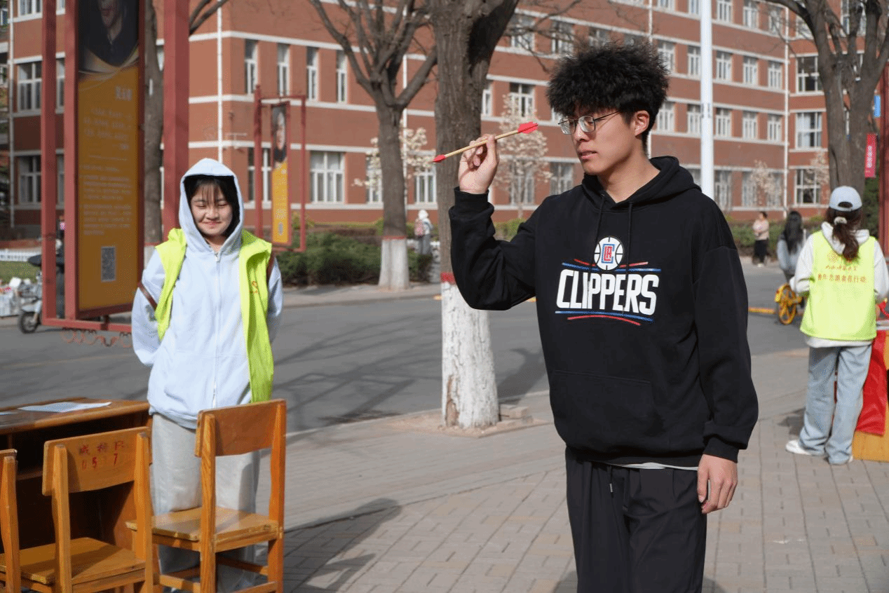 同学们纷纷摩拳擦掌,手持箭矢,全神贯注。在欢声笑语中,他们不仅体验到传统游戏的乐趣,更加深了对雷锋精神的理解。