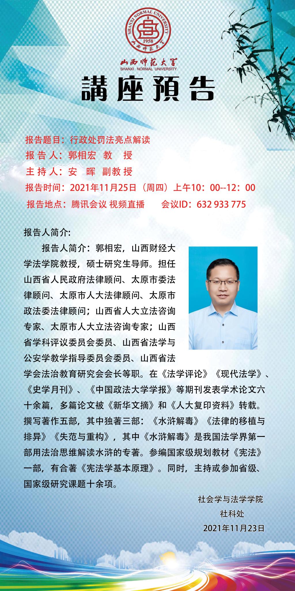 山西财经大学法学院郭相宏教授应6776永利集团邀请举办视频直播讲座