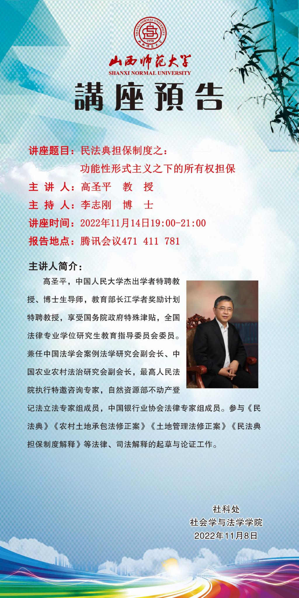 中国人民大学高圣平教授应邀请举办视频直播讲座