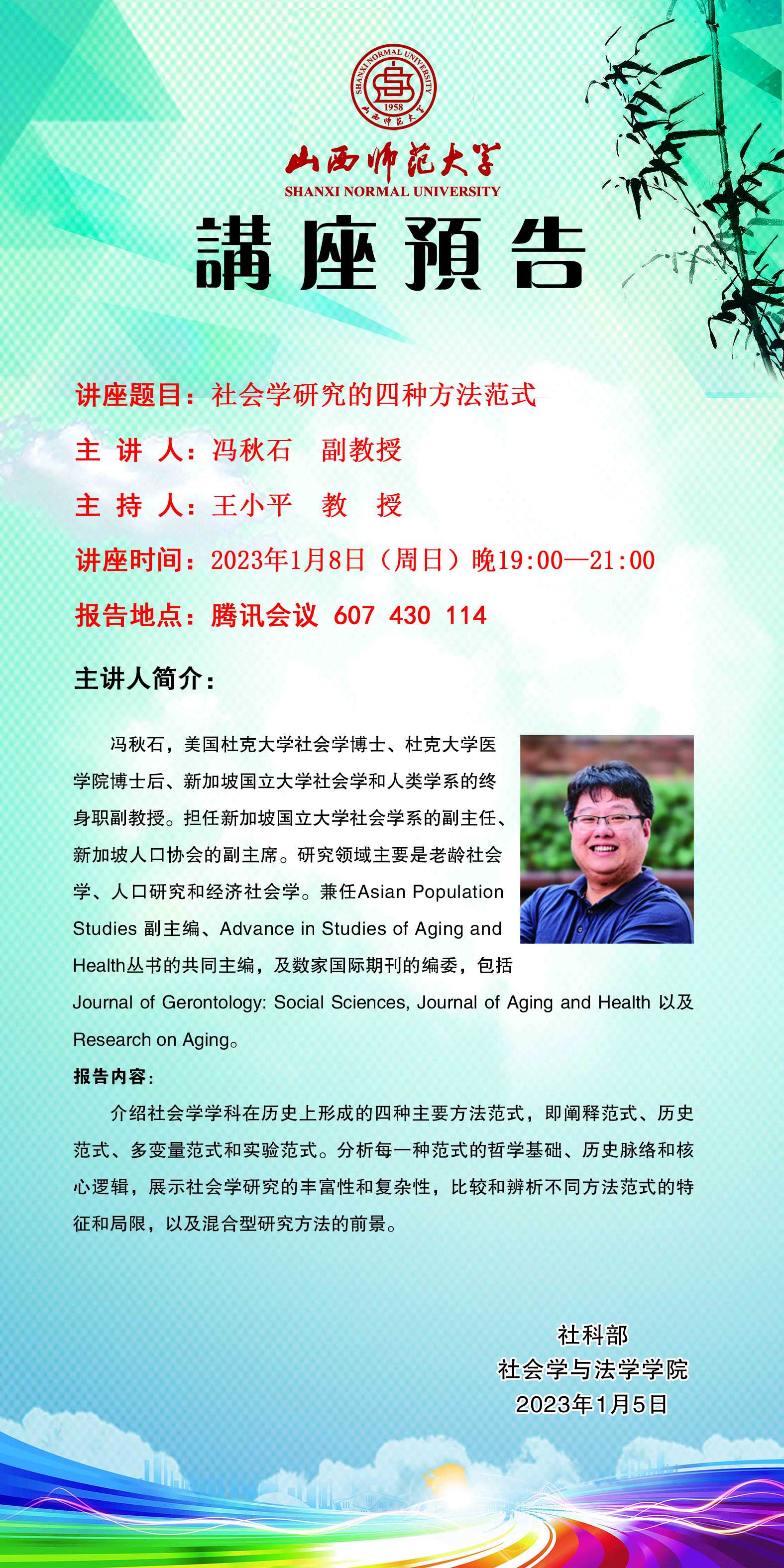 新加坡国立大学社会学和人类学系冯秋石教授应邀请举办视频直播讲座