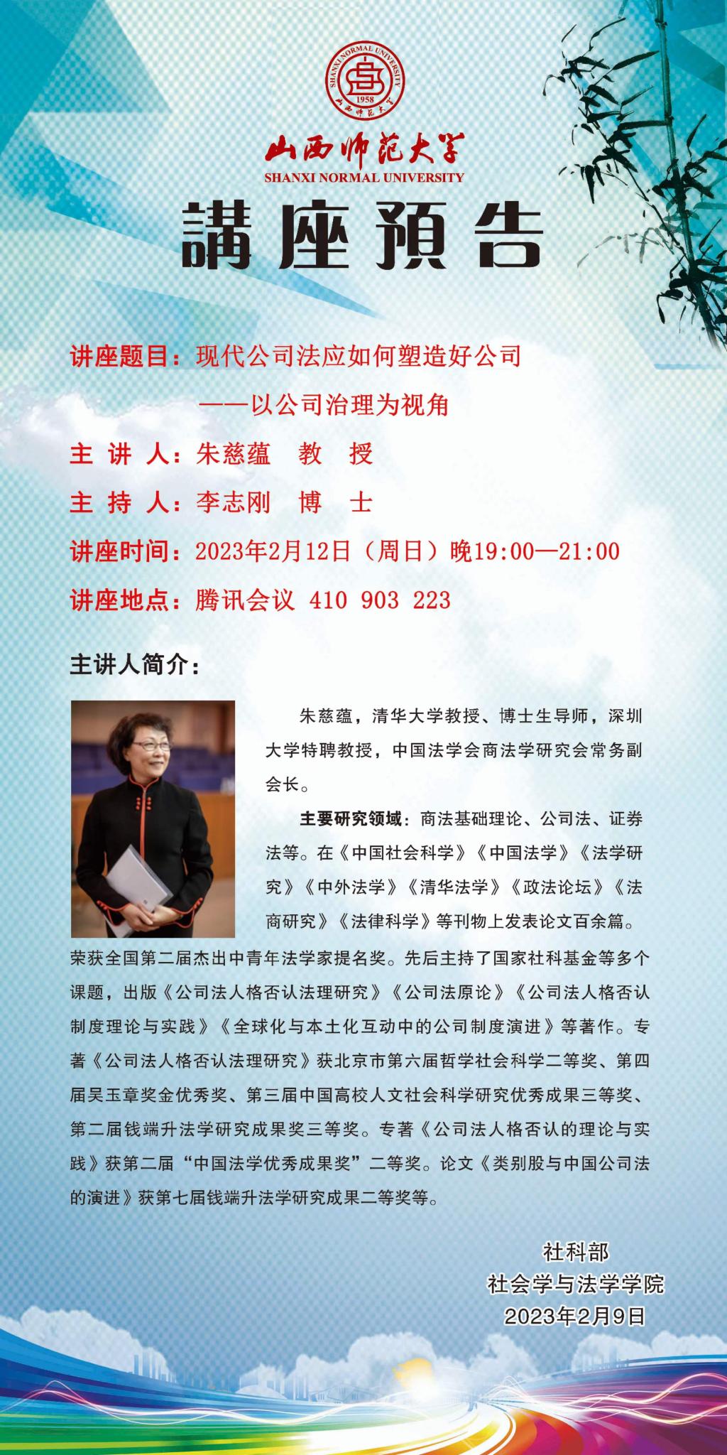 清华大学朱慈蕴教授应邀请举办视频直播讲座