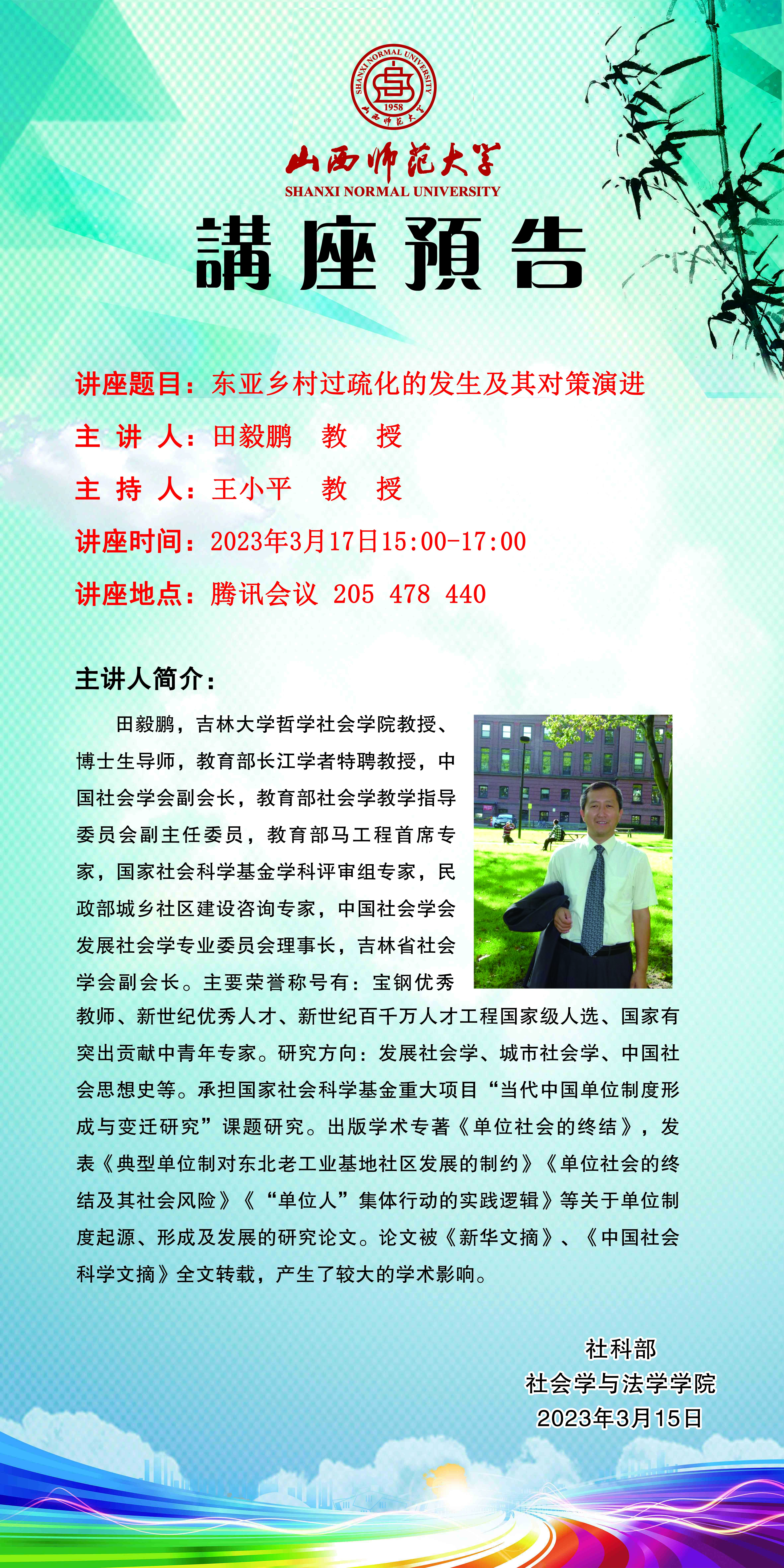 吉林大学哲学社会学院学院田毅鹏教授应邀请举办视频直播讲座