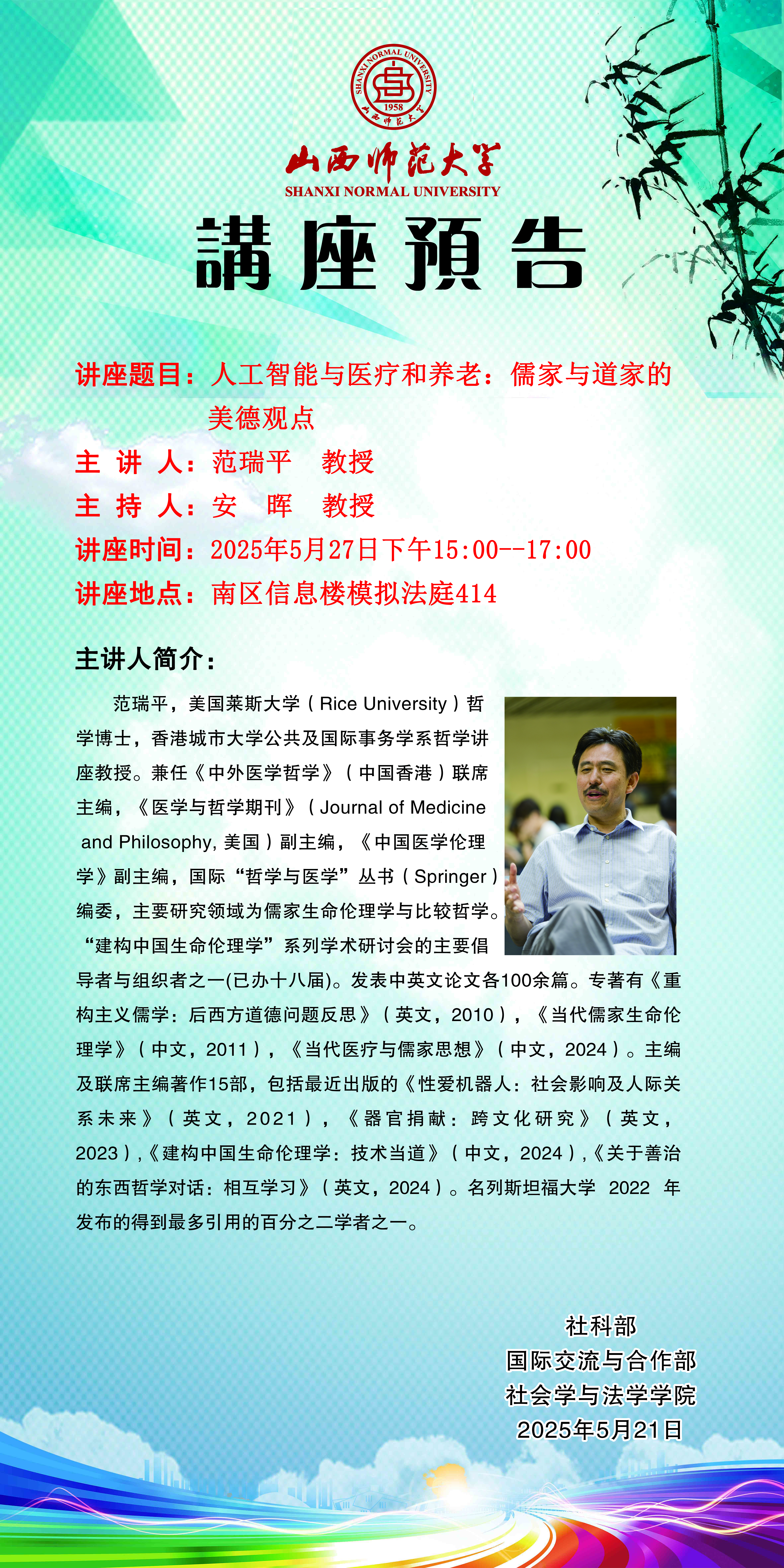 香港城市大学公共及国际事务学系哲学讲座教授范瑞平应公司邀请做学术报告